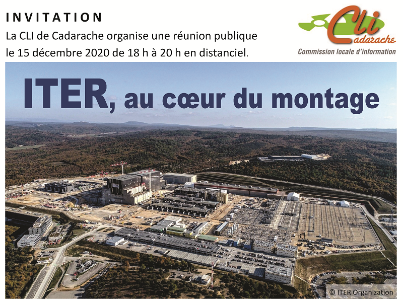 Si vous souhaitez participer à la réunion, merci de l’indiquer par mail à l’adresse suivante : jacqueline.berger@cli-cadarache.fr Vous pouvez nous envoyer une première question, en l’écrivant sur votre mail d’inscription. Cette réunion, ouverte à tous, se tiendra à distance, via l’application zoom. Les codes d’accès à la réunion publique vous seront envoyés le 15 décembre.